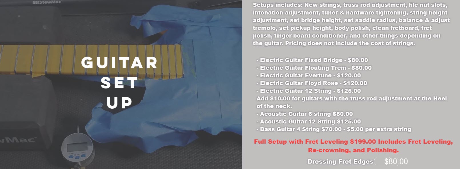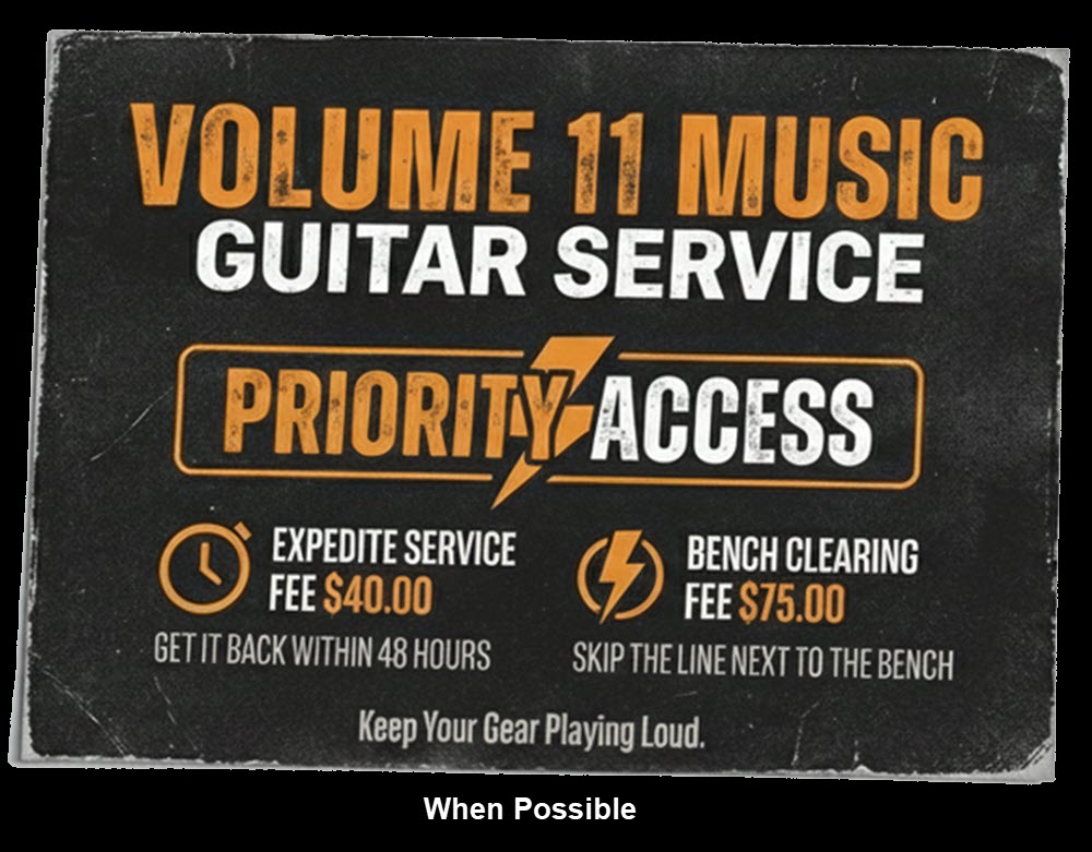 "As the premier destination for guitar repair in Fredericksburg, VA, Volume 11 Music offers expert luthier services including professional guitar setups, precision fret leveling, and custom electronics wiring. Our experienced technicians specialize in making your instrument play its best, from bridge adjustments on acoustic guitars to complex Floyd Rose setups and pickup installations. Whether you need a quick restring or a deep 'symptom-check' for buzzing and crackling, we provide the high-quality, local care your gear deserves."